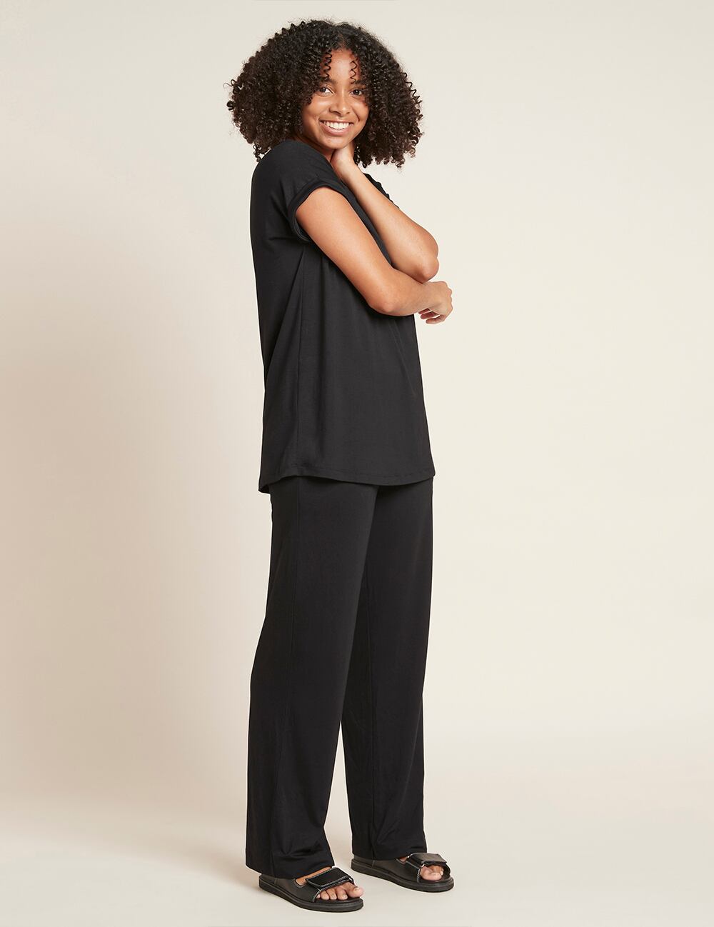 ダウンタイム ラウンジトップでくつろぎませんか。自宅でゆったりする時、あるいはお気に入りのジーンズと組み合わせた気軽なカジュアルスタイルに最適です。ゆるいカーブを描く襟ぐりと、ロールアップのカフスリーブ、裾・後身頃・ネックバンドのカバーステッチのディテールが特長で、この快適なラウンジトップで過ごす一日が楽しみになるでしょう。オーガニックバンブー生まれの通気性に優れたルームウェアは、極上の柔らかさと環境への優しさを兼ね備えています。